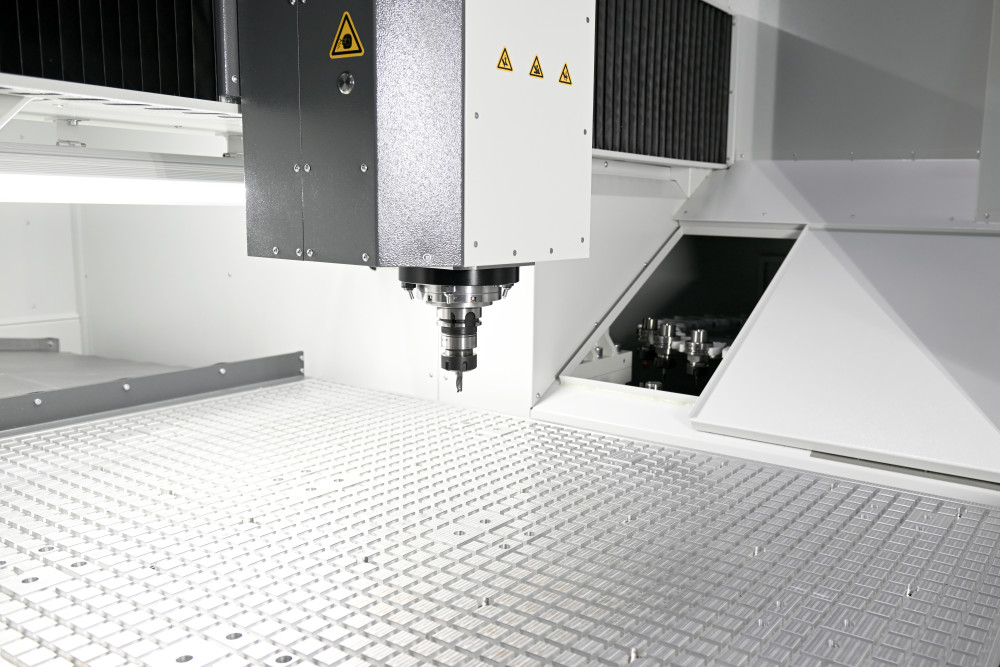Tool milling machines are devices used for industrial engraving or milling. They are perfect for high-efficiency aluminium machining - both for cutting out sheet metals, as well as aluminium milling from solid plates. The are used also for preparation of extruding, stamping and blanking dies. Most frequently, the machines are equipped with high-speed spindles, liquid-cooled in closed circulation with automatic tool changing. At the same time, the refrigerating unit with cooling liquid temperature stabilization minimizes the effect of spindle's thermal drift. The machines may also be equipped with simple spindle without automatic tool changing when machining works are carried out with one tool and the frequency of tool changes is not high.