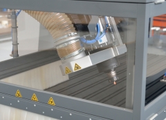 The milling machines perform both flat (e.g. cutting shapes out of sheet metals, drilling on the basins of two-dimensional drawing), and three-dimensional milling tasks (e.g. preparation of models for casting, laminating, thermal forming). In milling works, in which a number of tools are used, the routers are equipped with systems of automatic tool changing with storage. Automatic tool changing is available in linear or rotational version, depending on the size of the table and the customer's needs in terms of machine efficiency. Industrial machines are equipped with suction foot or suction hood. It is an effective means of dust extraction from the milling station. Suction hood may be set automatically on different heights, depending on the lenght of the attached tool, so that secure the most effective dust extraction.