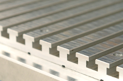 If a vacuum tables does not provide sufficient fixation, we provide our customers with hybrid tables. It is a table with very dense T-slots, to which vacuum is supplied. Owing to this, there is a possibility of adhering the large format elements by suction, as well as screwing in smaller elements, fixation devices or additonal equipment, e.g. rotary axis.