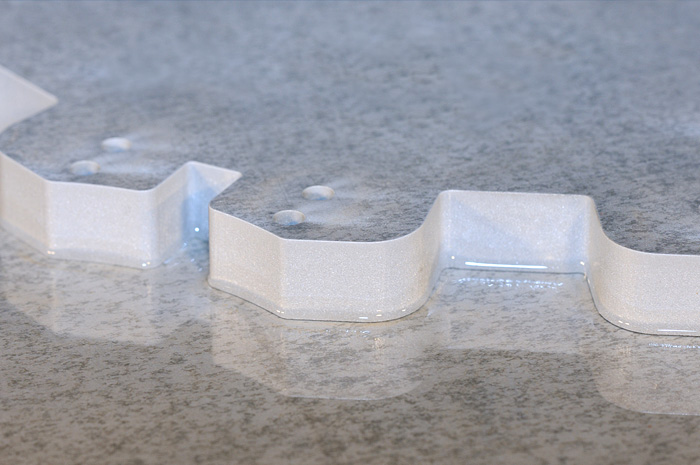 In waterjet machines the material lies on a special grid, under which there is water dissipating the energy of water jet. The material is cut, but the the grid is cut as well. Frequently, platform grating is used as a grid in waterjet machines. Unfortunately, because of its small thickness it quickly wears down and must be often replaced. The Kimla waterjet machines are equipped with a segment grid consisting of high galvanized steel strips, which ensures its long life and the opportunity to exchange individual ribs.