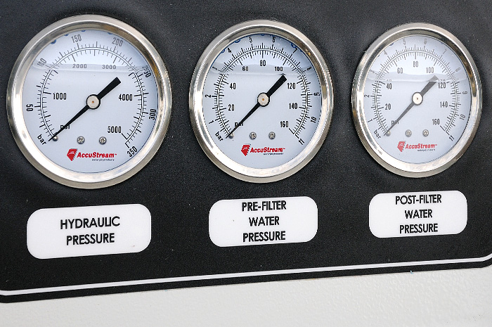 The Kimla waterjet machines are equipped with a high-pressure pump with a pressure intensifier and accessories made by a renowned American company - Accustream. Pumps manufactured by Accustream are competitive with regard to the lowest maintenance costs, which amount to approximately U.S. $ 1.25 per hour of work. It is worth noting that the maintenance costs of some producers are even four times higher. This is especially important because in a competitive waterjet service market the operating costs may determine the success of the project.