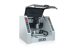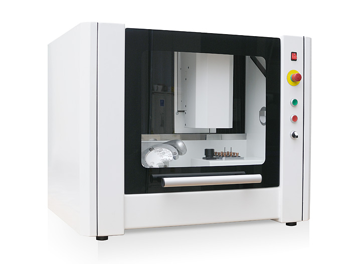 Grawerka stołowa pięcioosiowa. Maszyna skierowana przede wszystkim do protetyków i złoników umożliwia wykonanie modeli pięcioosowych z wosku i tlenków cyrkonu. Całkowicie zabudowana doskonale nadaje się do czystych pomieszczeń biurowych. Całkowita zabudowa ponadto znacznie redukuje hałas od wrzeciona. Dzięki połączeniu technologii kinematyki równoległej z doskonałym systemem sterowania z dynamiczną analizą wektorów osiągneliśmy wydajności wielokrotnie przekraczające obowiązujące standardy. Wysokiej klasy elektrowrzeciono indukcyjne o maksylalnych obrotach 60.000 rpm oraz automatyczna wymiana narzędzi z magazynem pozwala na wyjątkowo wydajną pracę przy zachowaniu doskonałej jakości obróbki.