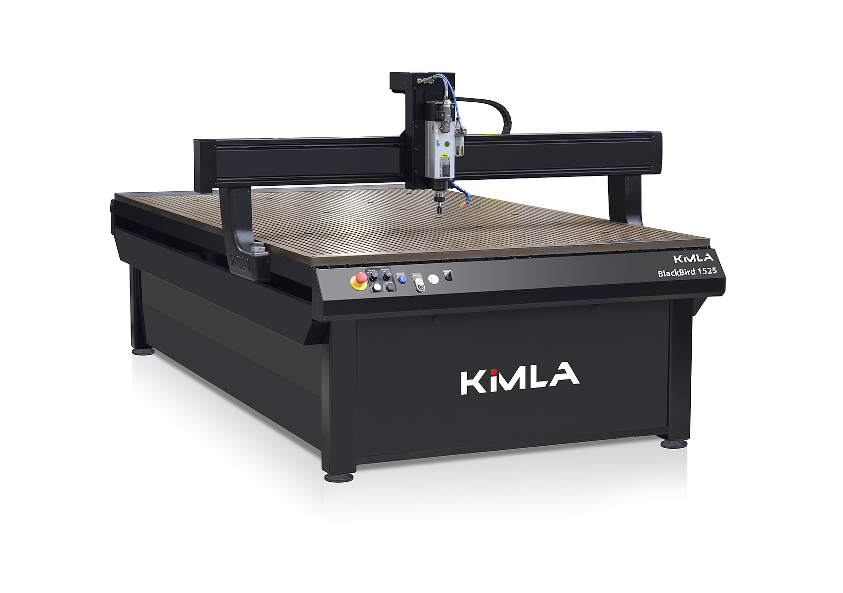 Plotery BlackBird występują w kilku wersjach. Najcześciej wybieraną maszyną z tej grupy jest urządzenie z wyposażeniem prezentowanym na zdjęciu. Z wrzecionem 24000 obr/min bez automatycznej wymiany narzędzi i stołem T-rowkowym.