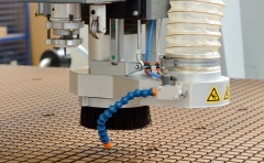 Stoły T-rowkowe z anodowanych profili aluminiowych znakomicie ułatwiają mocowanie materiałów. Drugim wariantem jest stół podciśnieniowy, który doskonale sprawdza się w mocowaniu dużych arkuszy kartonu, papieru, płyt tworzyw sztucznych, drewnopochodnych, blach aluminiowych i innych. Jako warstwa pośrednia pomiędzy stołem a materiałem stosuje się płyty HDF. Nadają się do tego celu idealnie, ponieważ przepuszczają powietrze, więc leżący na nich materiał jest przymocowany. Można wycinać elementy na wylot nie martwiąc sie o uszkodzenie stołu. Gdy się zniszczą można je splanować lub wymienić na nowe, zaletą jest to że są tanie i łatwo dostępne.