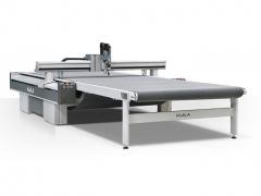 Konwejor to stół taśmowy, który automatycznie przesuwa materiał dzięki czemu wzrasta komfort i wydajność pracy. Konwejor umożliwia pracę w trybie ciągłym co ogranicza zbędne przestoje maszyny. Dodatkowo maszynę wyposażyć można w stół odbiorczy i załadowczy, system celowniczy, głowice oscylacyjną, głowice frezującą, głowice piszącą, głowice znakującą, głowice bigującą.